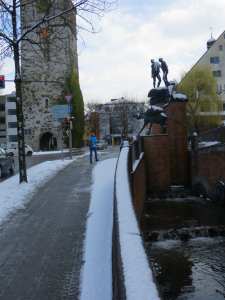 Almost immediately the rain started lashing down, soon turning to sleet, and then to driving snow. Traffic crawled along at 30km/h, apart from those doing 50 and those doing 10! Remembering that any similar weather simply shuts the UK down completely, it was still no surprise to see a veritable armada of snow ploughs and various salt & grit spreaders looming through the gloom. However, with no real time constraints we decided to cut the day short upon reaching Ravensburg, a distance of … 25km!